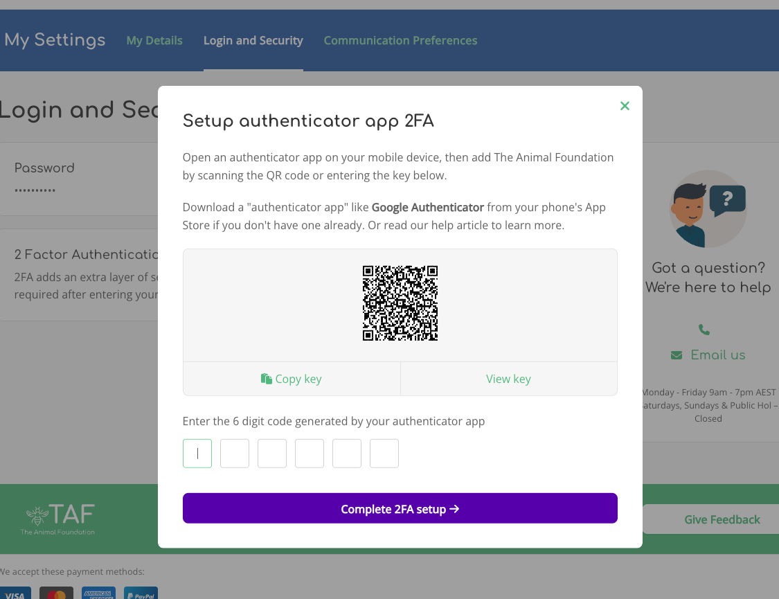 We’ve introduced a new 2FA (Two-Factor Authentication) prompt to strengthen supporter account security and build trust.