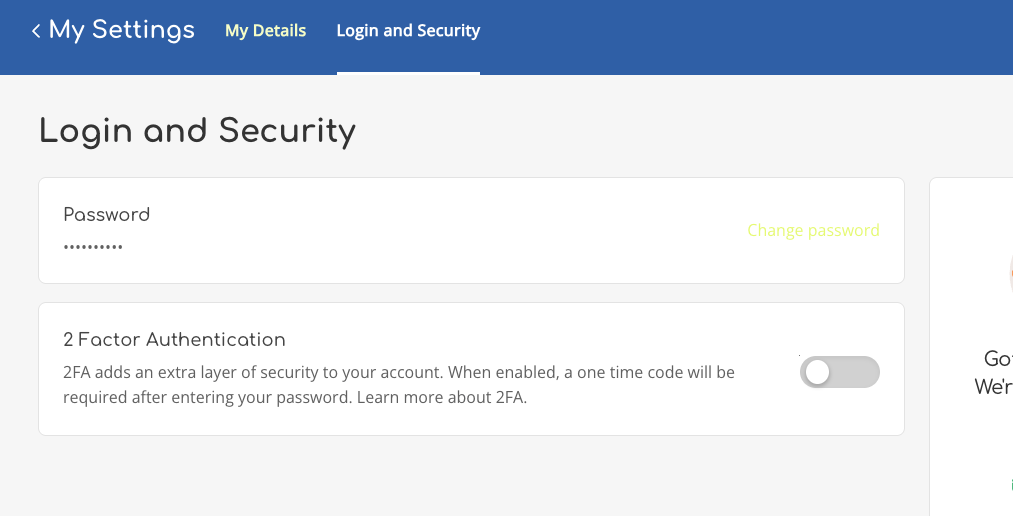 - From here, they can toggle 2FA on and follow the same setup process described above.